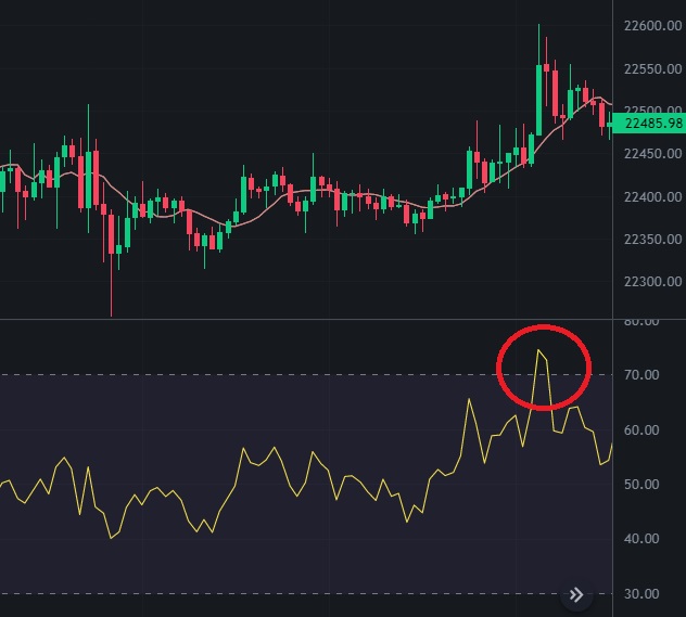 앞서 언급했듯이 RSI는 일반적으로 과매수 및 과매도 상태를 식별하는 데 사용됩니다. RSI가 70 이상이면 과매수 상태로 간주되며 자산이 과대평가되어 가격 조정 또는 반전이 발생할 수 있음을 나타냅니다. 반대로 RSI가 30 미만이면 과매도 상태로 간주되며 자산이 저평가되어 가격 반등 또는 반전이 발생할 수 있음을 나타냅니다.
